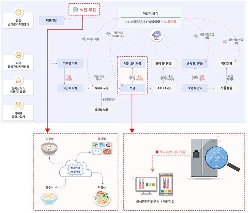 식재료 구매부터 보관, 전처리, 조리, 배식, 식단관리, 보존식 관리 등 급식관리 전반의 업무를 지능정보화해 식중독 예방과 급식 품질 향상도 추진한다.