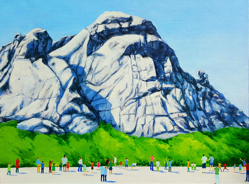 ▲ 참으로 버거운 시대에 큰바위얼굴이 등장한 목적은 모든 사람들에게 꿈과 용기를 주려는 것이다. 인류가 주목할 큰바위얼굴 시대가 열리고 있다. ‘동방의 등불 큰바위얼굴(현의송 作)’