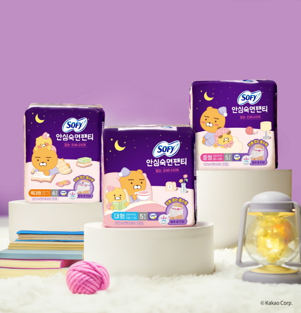 이번 협업 제품은 쏘피의 팬티형 생리대 ‘안심숙면팬티’로, 샘 걱정 없는 편안한 숙면을 제공하는 것이 특징이다. 신체 곡선에 맞춘 볼록맞춤 구조가 생리혈을 빈틈없이 흡수하며, 속옷처럼 부드러운 소프트 이너 커버가 착용감을 높인다. 또한 허리 부분에 적용된 360핏 신축 허리밴드가 전방향 밀착력을 강화해 안정감을 더한다.