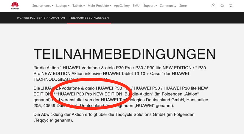▲ 화웨이 독일 웹페이지에 등장한 P30 프로 뉴 에디션 (이미지=디지털트렌즈) |