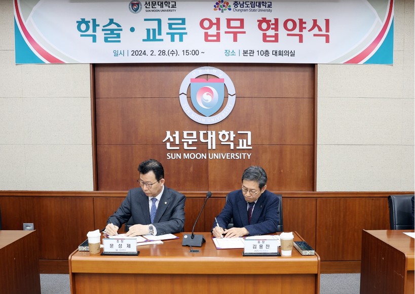 [일요주간 = 김성환 기자] 선문대학교와 충남도립대학교는 선문대 아산캠퍼스에서 교육 및 학술 교류를 활성화하고 지역 발전을 도모하기 위한 업무 협약을 28일 체결했다.