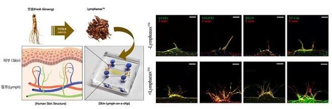 이 시스템을 통해 연구팀은 인체 피부 세포와 림프관 세포를 공배양해 스킨림프온어칩을 제작, 림프관 형성과 활성화에 미치는 여러 물질의 영향을 직접 확인할 수 있었다. 특히 아모레퍼시픽이 개발한 림파낙스 성분이 피부 내 림프 순환 개선에 긍정적인 영향을 미친다는 사실을 발견했다.