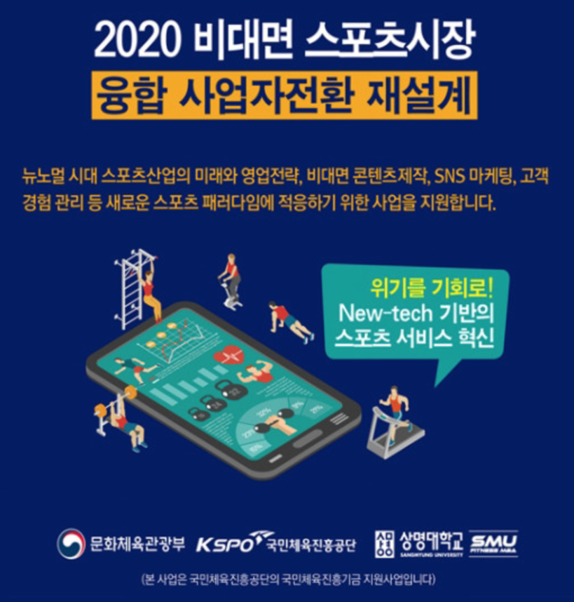 ▲2020 비대면 스포츠 시장 융합 사업자 전환 재설계 프로그램은 문화체육관광부, 국민체육진흥공단의 재정 후원과 상명 피트니스 MBA의 교육이 진행된다.(사진=(주)열린 제공.