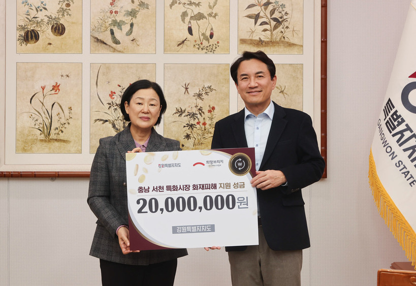 성금은 지자체 간 협력과 연대로 피해 상인들이 일상으로 빠르게 복귀할 수 있도록 지원하는데 목적이 있으며, 김진태 강원특별자치도지사는 “설 명절을 앞두고 삶의 터전을 한순간에 잃고 실의에 빠진 상인 여러분께 깊은 위로의 말씀을 드리고, 이번 성금 지원이 어려운 상황을 함께 덜어내어 새로운 시작을 할 수 있는 힘이 되었으면 좋겠다”고 말했다.