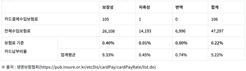 -전체 수입보험료의 0.22%만 카드결제…생보업계 평균보다 23배 적어