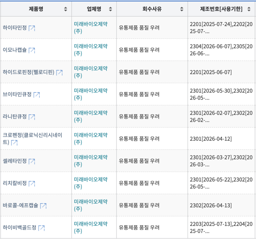 [일요주간 = 하수은 기자] 경기도 안성에 소재한 미래바이오제약(주)이 자사에서 제조·유통 중인 의약품 총 15개 품목에 대해 유통 중 품질에 대한 우려를 이유로 자진 회수를 실시한다.