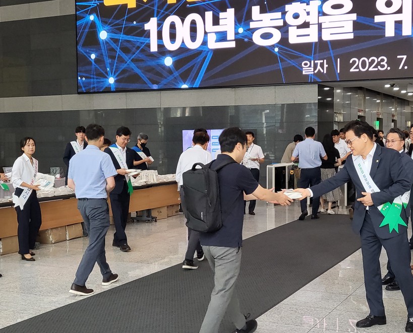 이날 서울 중구 농협중앙회 본관에서 열린 행사에는 이재식 농협중앙회 부회장을 비롯한 주요 임직원들이 참석해 출근하는 직원들에게 ‘정보보호 6대 수칙’을 담은 리플릿과 쌀을 전달하며 정보보호 캠페인을 진행했다.
