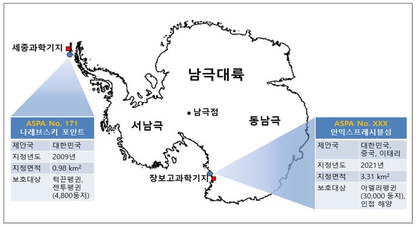 환경부에 다르면 1961년부터 현재까지 한국·미국·프랑스·일본 등 16개국은 총 72곳의 남극특별보호구역을 지정했다. 보호구역 지정을 제안했던 국가가 중심이 돼 생태계 조사와 환경관리 및 출입자 통제 등을 위한 관리계획을 수립·시행하고 있다.