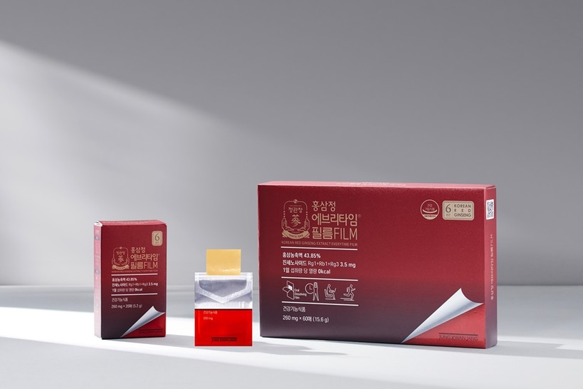 ‘홍삼정 에브리타임 필름’은 구강용해필름(ODF, Oral Dissolving Film)에 홍삼농축액을 압축시킨 필름형 제품으로 하루 한 장만으로 홍삼의 기능성분을 섭취할 수 있도록 설계했다. 1일 섭취량당 열량 0㎉인 제로칼로리로 부담없이 즐길 수 있는 점도 특징이다.