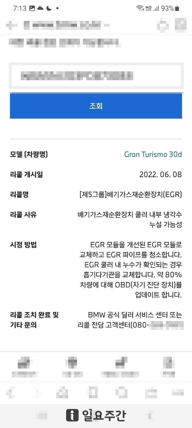 5일 <일요주간> 취재를 종합하면 BMW는 2018년 이후 지난해까지 해당 차종들에 대해 매년 EGR 교체 등의 무상수리를 진행하고 있으며 올해는 리콜 여부가 아직 미정인 것으로 확인됐다.