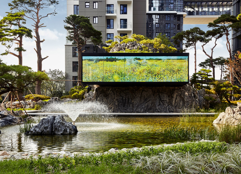 ▲ 가든베일리, 연못과 초대형 미디어 큐브.(사진=삼성물산 제공)