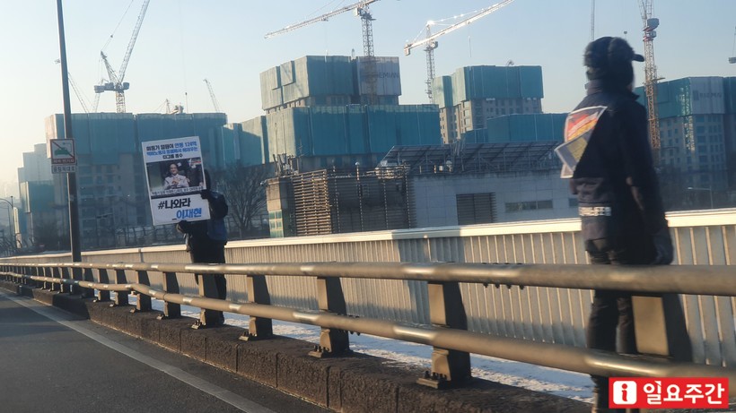 ▲ 총파업 23일 민주노총 전국택배노조 CJ대한통운본부 조합원들이 20일 오전 반포대교에서 이재현 CJ그룹 회장의 책임을 촉구하는 시위를 벌이고 있다. (사진=일요주간) |