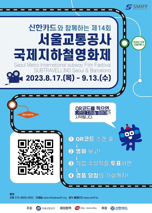 [일요주간=김영란 기자] 서울교통공사(이하 ‘공사’라고 함)와 (사)서울국제초단편영상제가 공동으로 주최하고 신한카드가 후원사로 참여하는「제14회 서울교통공사 국제지하철영화제(이하 ‘국제지하철영화제’라고 함)」가 8월 17일부터 9월 13일까지 진행된다.