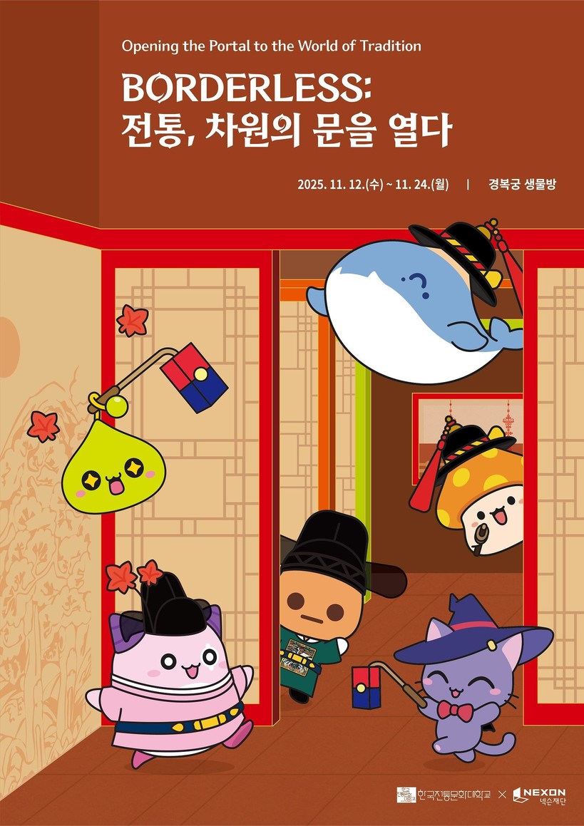 넥슨재단은 지난해 덕수궁에서 열린 제2회 보더리스-Craft판 ‘시간의 마법사: 다른 세계를 향해’ 전시를 통해 무형유산 전승자와 현대공예 작가의 협업을 선보인 바 있다. 당시 전시 기념 굿즈 판매 수익금은 한국전통문화대학교 신진예술가 양성 지원 사업에 전액 기부되었으며, 이를 기반으로 전통미술공예학과 학생들을 대상으로 넥슨 IP를 활용한 전통 공예 작품 공모전 ‘게임, 헤리티지가 되다’가 진행됐다.