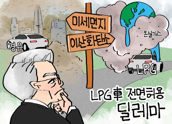 [일요주간 만평] LPG 車 전면허용 딜레마...미세먼지 줄지만 온실가스는 증가