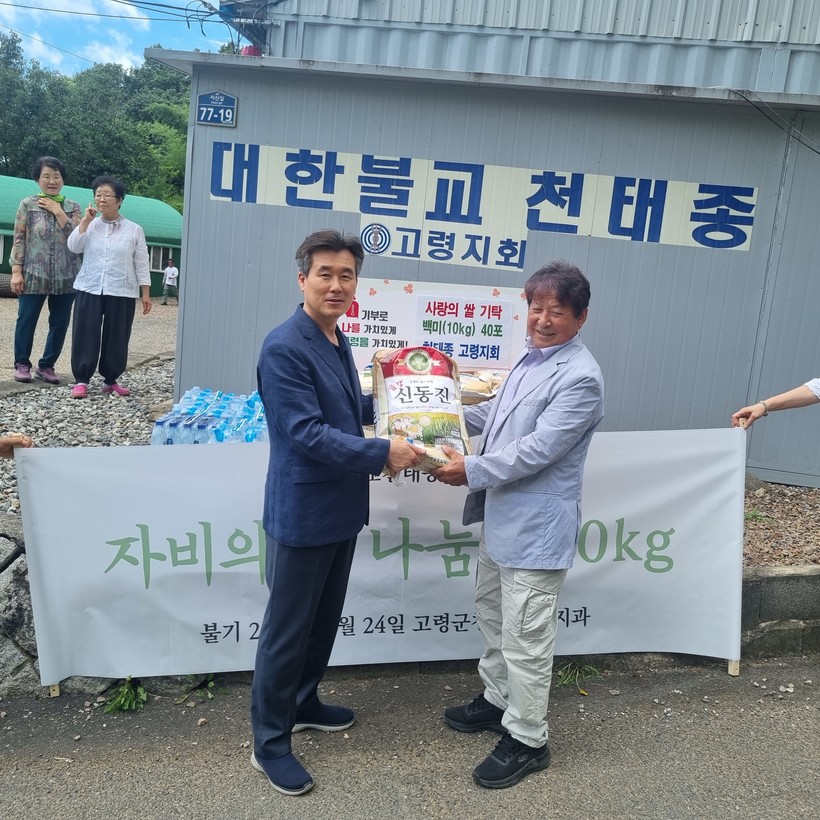 대가야읍 지산리에 위치한 천태종 고령지회는 “어르신들이 무더운 여름을 보내시는데 조금이나마 도움이 되고자 쌀을 기탁하게 됐다”고 말했다.