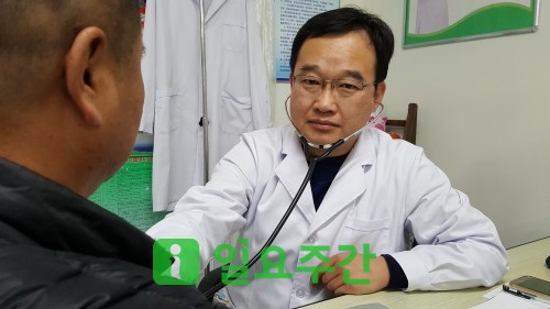 ▲ 옌타이 명강내과 안철우원장이 환자를 진맥하고 있다. |