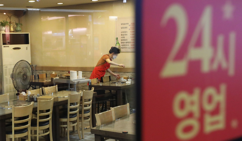 | ▲ 정부가 내달 1일부터 4주간 새로운 방역체계인 '단계적 일상 회복' 1단계가 시행한다고 밝혔다. 유흥시설을 제외한 모든 다중이용시설의 영업시간 제한이 해제돼 24시간 영업이 가능해진다. 사진은 서울 송파구의 한 음식점의 관계자들이 매장 정리를 하고 있는 모습. (사진=뉴시스) |
