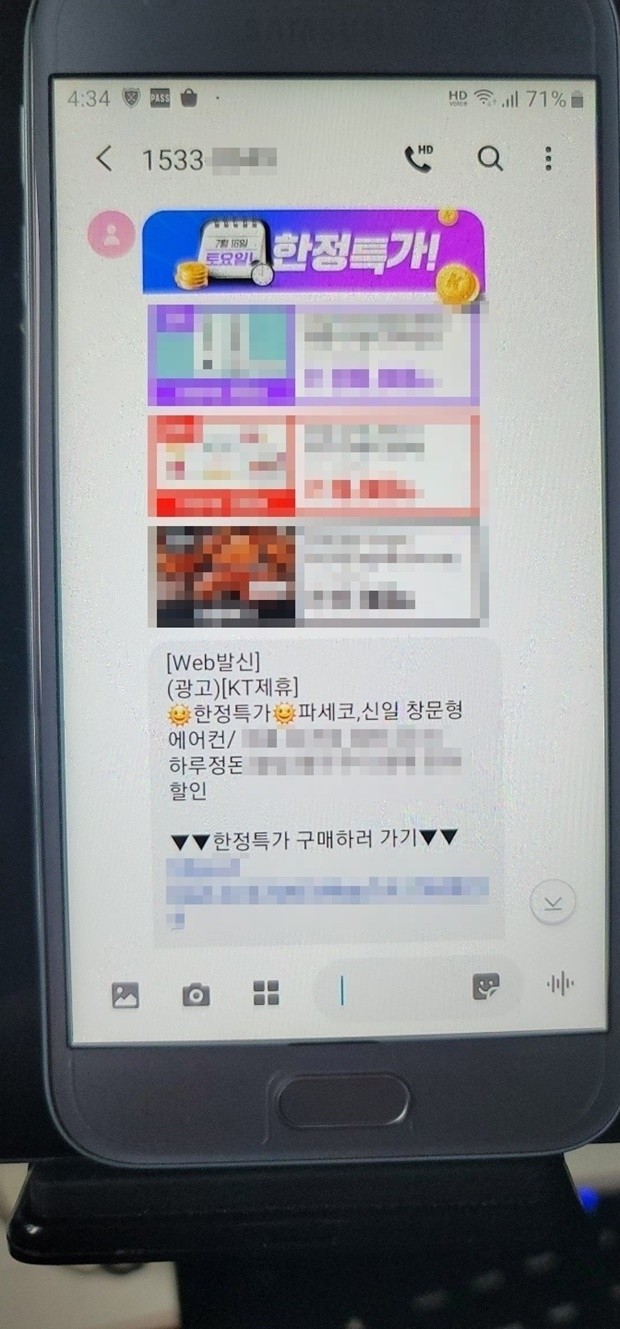 ▲ 소비자 A 씨가 KT로 부터 받은 K-Deal 관련 홍보 및 광고 문자.(사진=제보자) |