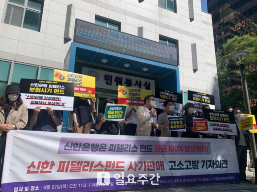 앞서 지난해 9월 22일 금융정의연대, 신한 피델리스펀드 피해자 대책위원회(이하 피델리스펀드 대책위), 전국 사모펀드 사기피해 공동대책위원회는 서울경찰청 앞에서 신한 피델리스펀드 사기판매 고소고발 기자회견을 통해 대규모의 사기 및 자본시장 교란 사건을 일으키고도 무책임한 행태로 일관하는 신한은행을 강력하게 규탄하고 경찰의 신속하고 철저한 수사를 촉구한 바 있다.