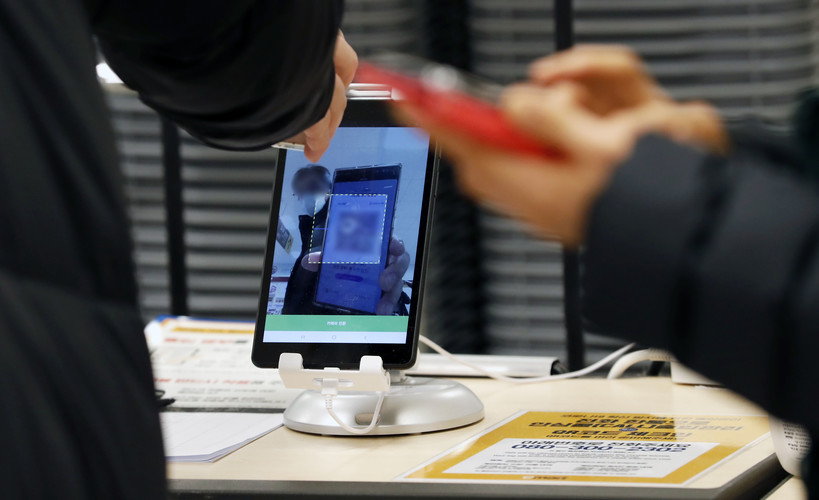 | ▲ 서울 시내 한 대형마트를 찾은 시민들이 QR코드로 출입 인증을 하고 있다. (사진=뉴시스) |