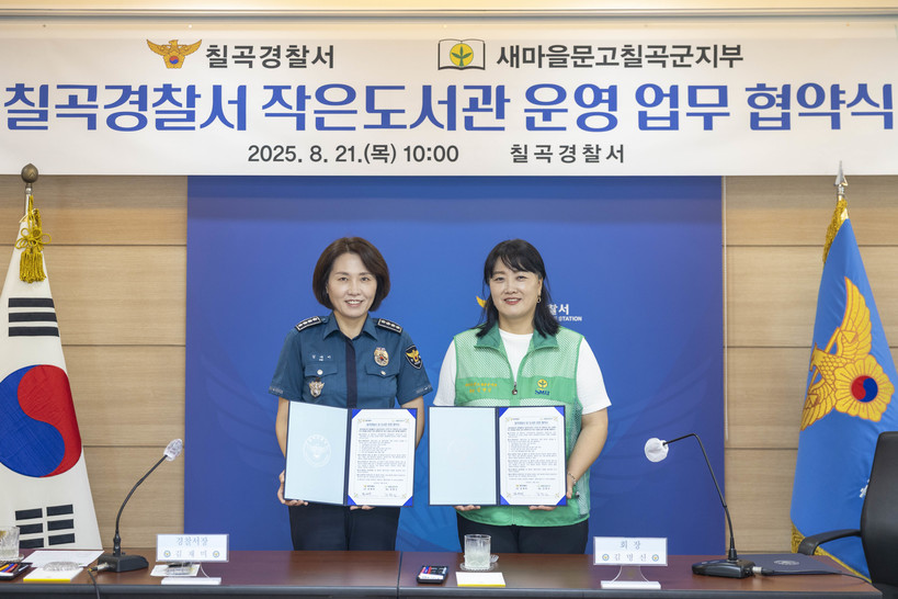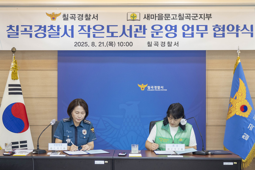 지난 21일 새마을문고 칠곡군지부(회장 김명신)는 칠곡경찰서(서장 김재미)와 협약을 맺고 ‘작은 문고’를 설치했다.