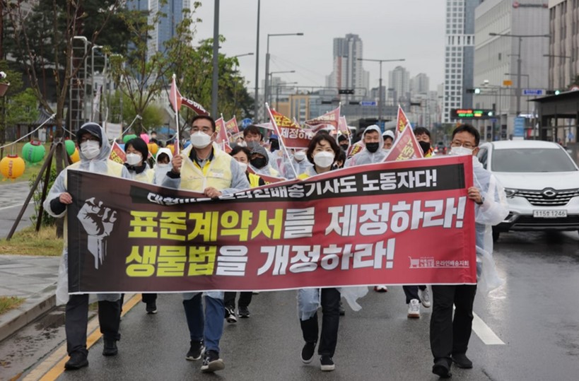온라인배송지회는 ▲노동기본권 보장 ▲표준계약서 제정 ▲생활 물류 서비스산업발전법 개정을 주요 요구로 내세웠다.