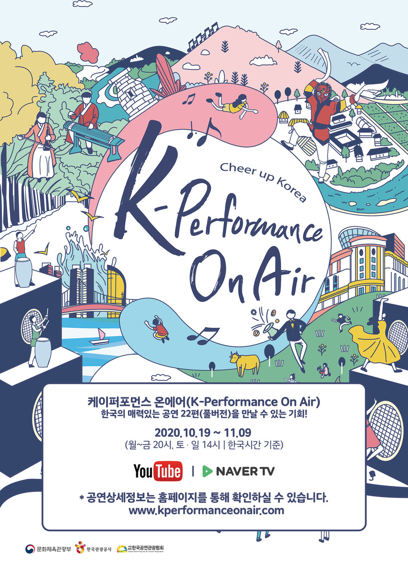 [일요주간 = 노현주 기자] 공연관광 온라인 쇼케이스 'K-퍼포먼스 온에어(K-Performance On Air)'가 유튜브와 네이버TV를 통해 19일부터 11월9일까지 열린다.