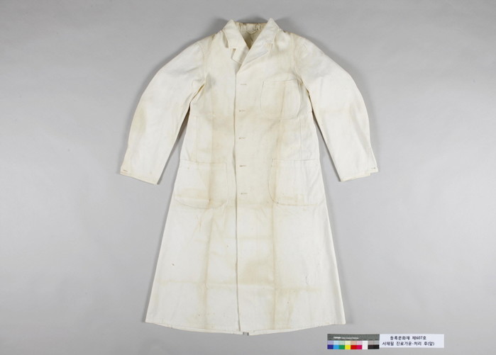 '서재필 진료가운'은 갑신정변의 주역이자 독립신문 창간자인 서재필(徐載弼, 1864~1951) 박사가 의사 시절에 착용했던 진료복이다. 캔버스 조직(유화를 그리는 바탕 직물의 조직으로 평직이나 사직으로 짠 직물)으로 된 면직물로 만들어졌고, 진료가운의 안쪽에는 서재필의 영문이름인 필립 제이슨(Philip Jaisohn)에 가운데 “S”가 들어간 “Dr. P. S. J.”의 이니셜이 붙어 있다. 그리고 진료가운을 실제 제작한 미국 필라델피아의 “C. D. Williams & Co.(1.2차 세계대전 당시 미국 군의관과 간호사복을 만들었던 곳으로 당시 필라델피아의 제퍼슨 병원 근처에 있었음)”의 상호와 주소 라벨도 붙어 있다.