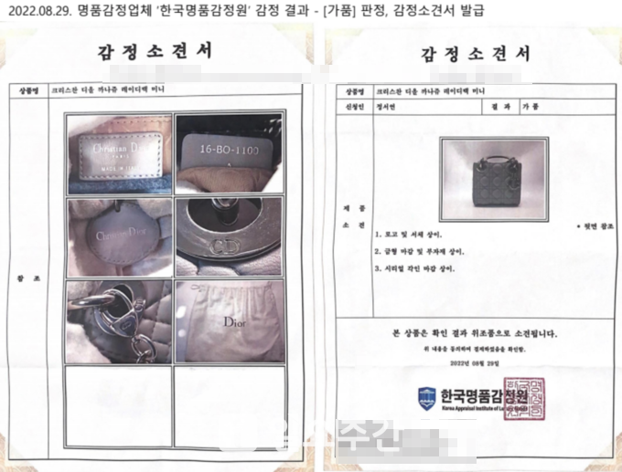 이후 B 씨는 올해 8월 29일 동일 가방을 타 명품 감정 업체(한국명품감정원)에 감정을 의뢰해 ‘가품’ 판정을 받고 혼란에 빠졌다. 다음 날인 30일, C사에 이 같은 사실을 알리고 재감정 받았다. 그 결과 C사는 이전 감정 판정 오류에 대한 실수를 인정하고 ‘가품 소견서’를 발급해주었다.
