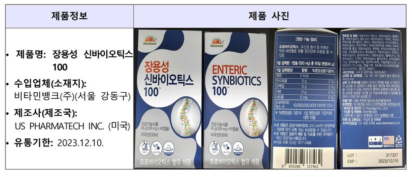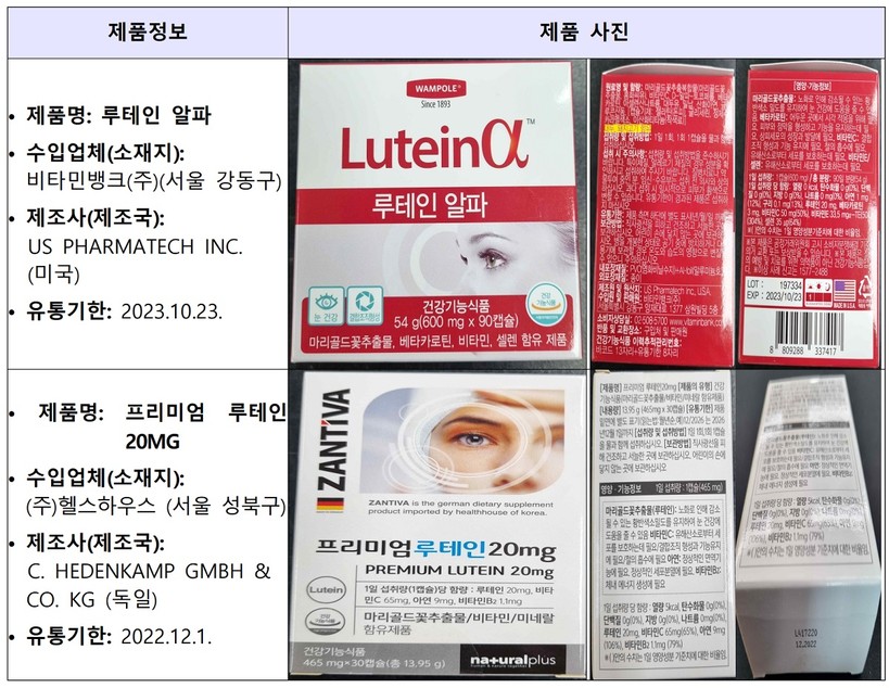 3건은 비타민뱅크의 ‘장용성 신바이오틱스100’과 ‘루테인 알파’, 헬스하우스의 ‘프리미엄 루테인 20MG’ 등이다.