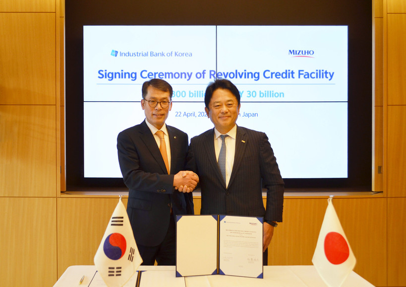 [일요주간 = 김완재 기자] IBK기업은행(은행장 김성태)은 지난 22일 일본 도쿄 미즈호은행 본사에서 미즈호은행과 원화 3000억 원/엔화 300억 엔 규모의 상호 커미티드라인 계약을 체결했다고 23일 밝혔다.