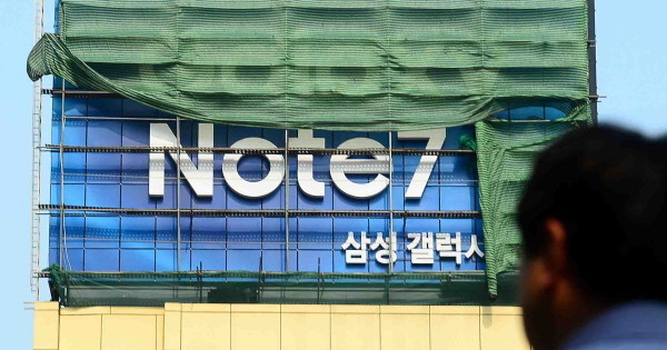 ▲ 갤럭시노트7의 배터리 폭발문제 등의 이유로 리콜 및 교환에 이어 생산 중단까지 결정한 삼성전자의 위기감이 고조되고 있다. 14일 오후 서울 종로구 광화문광장 인근 옥외광고판에 설치된 갤럭시 노트7 광고가 철거되고 있다. @뉴시스 |