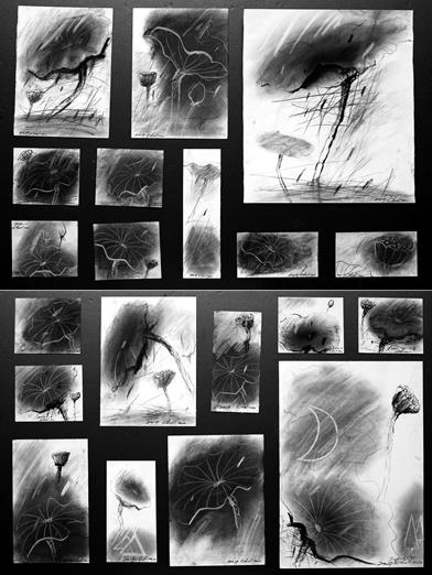▲ ‘연꽃’ 이야기의 내면적 외면적 세계를 함께 다룬 차콜 작품 ‘290점 1세트’중 일부