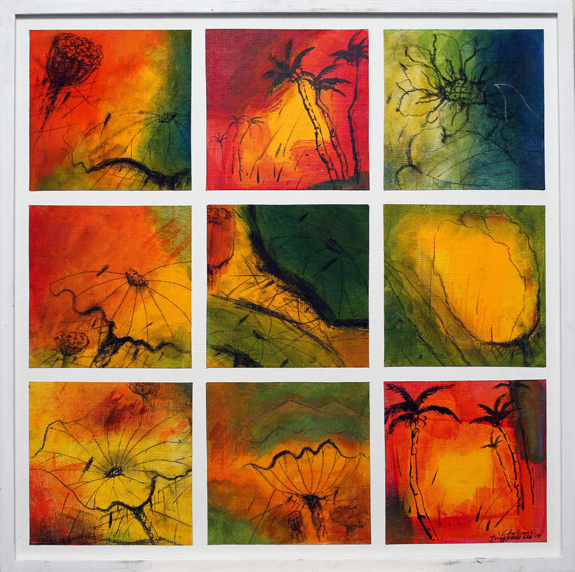 ▼ 한국에서는 2005, 2008, 2018 개인전시회를 개최했는데, 2018년도부터는 ‘자연과 함께’라는 제목 하에 ‘연꽃’ 이야기의 내면적 외면적 세계를 함께 다룬 ‘290점 1세트’의 차콜 작품을 처음으로 제작하였습니다. 그리고 자연의 하모니 혼합재료 ‘300점 1세트’와 태고의 숨결 바위섬을 주제로 한 ‘100호짜리 4개의 작품과 80호짜리 4개의 차콜페인팅 작품을 포함하여 인사아트갤러리에서 개인전을 가졌습니다.