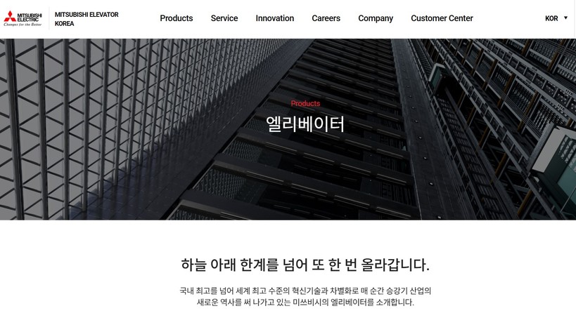 | ▲ 미쓰비시엘리베이터 홈페이지 갈무리 |
