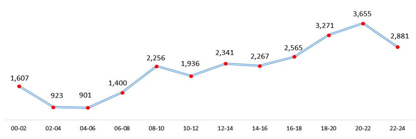 시간대별로는 낮 시간대인 12시 무렵부터 사고가 늘기 시작하여 22시까지 지속적으로 증가하고, 야간 시간대의 사고 비율이 낮 시간 보다 높아 안전운전에 유의하여야 한다.