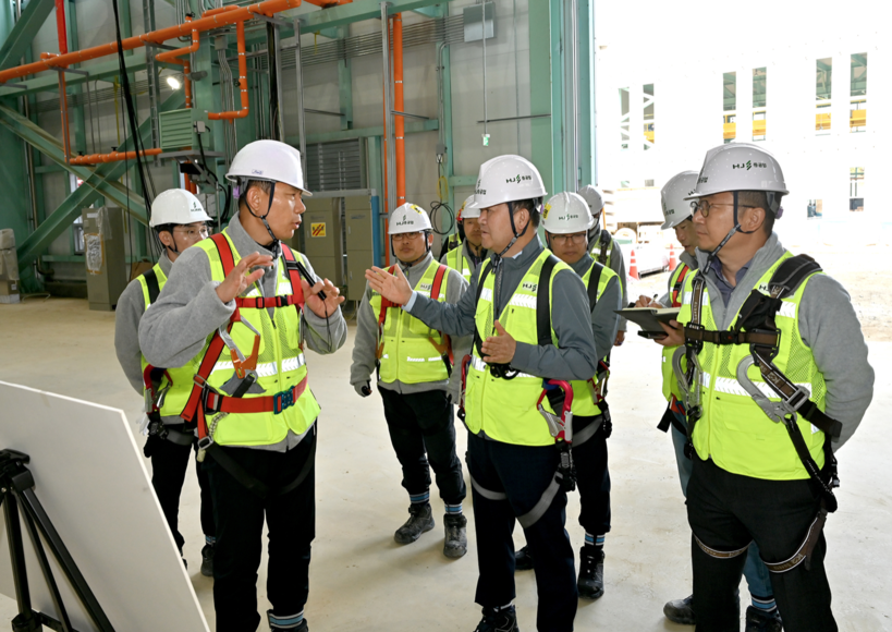 ▲ 현장 안전점검 중인 김완석 대표(사진 가운데). (사진=HJ중공업 제공) |