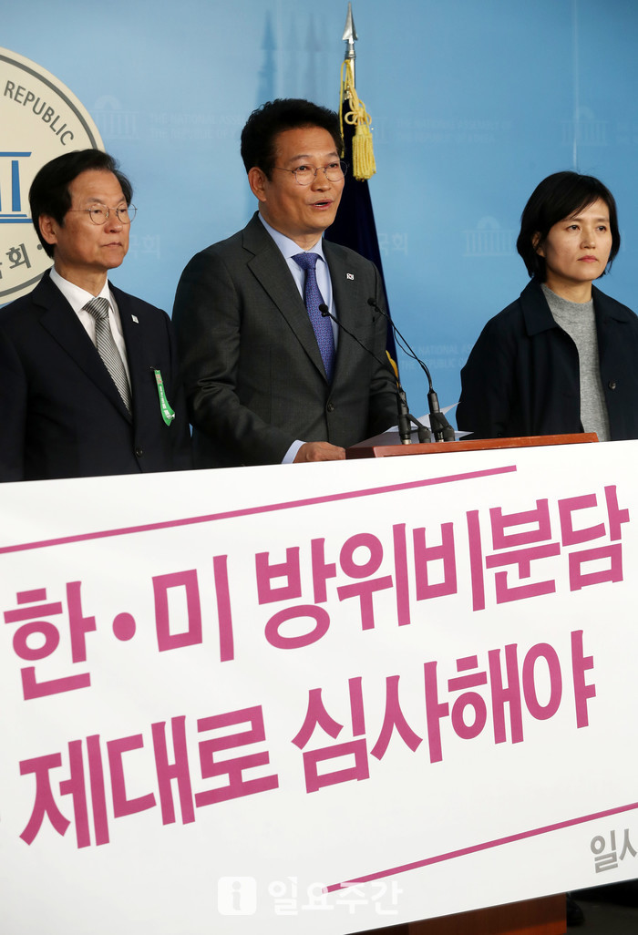 [일요주간 = 김쌍주 대기자] 내년 11월 미국대선을 앞둔 도날드 트럼프 미국대통령이 주한미군 감축까지 거론하며 방위비 분담금 증액을 압박할 가능성이 거론되고 있는 가운데 13일 국회 정론관에서 송영길 의원을 비롯한 천정배, 김종대 의원 및 참여연대와 함께 제10차 한미방위비분담금협상 관련 기자회견을 가졌다.