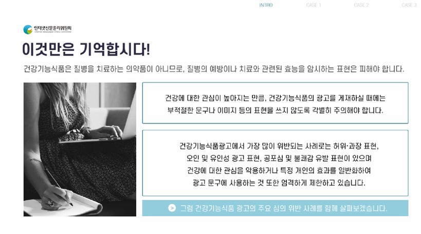 | ▲ 인터넷신문 광고 품목별 가이드 – 건강기능식품(영상 이미지 캡처) (이미지=인터넷신문윤리위원회) |