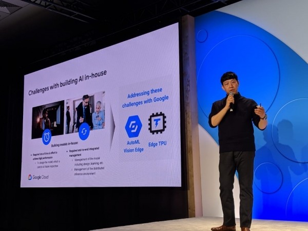 발표에 나선 LG CNS AI빅데이터담당 이성욱 상무는 구글과 협력해 제조공장 부품 불량 판정에 AI 이미지 판독 기술을 적용한 비전검사 사례를 소개했다.