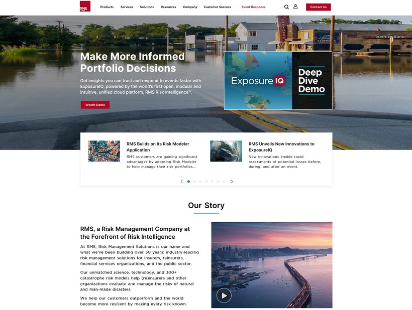 RMS는 20년 넘게 자연 재난 위험을 모델링해 왔다. 제4차 2007 IPCC 평가 보고서 작성에 힘을 보탠 이후 재난 손실에 미치는 기후 변화의 영향을 연구해 왔다. RMS 기후 변화 솔루션은 기후 변화 전문가 자문과 컨설팅, 규제·ESG·TCFD 지원 등을 포함한다.
