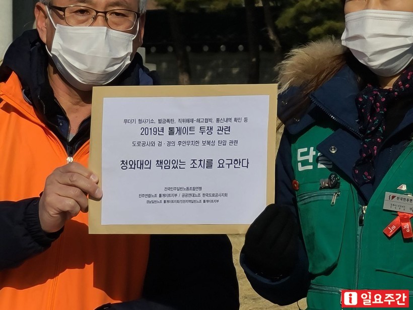 이들은 도로공사에 직접고용(비정규직에서 본사 정규직 전환)된 이후 무더기 형사기소, 벌금폭탄, 직위해제-해고협박, 통신내역 확인 등 2019년 고속도로 톨게이트 요금수납원들의 투쟁과 관련해 도로공사의 무치별적인 보복성 탄압이 진행되고 있다고 주장했다.