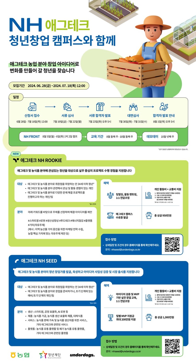 농협중앙회, 농업 혁신 이끌 청년 대상 '애그테크 청년 창업 캠퍼스' 참가자 모집2024.07.09