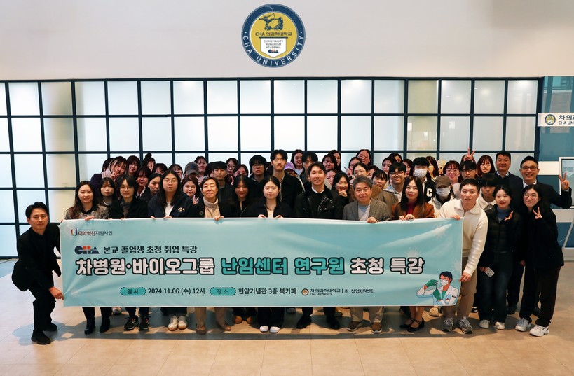 [일요주간 = 하수은 기자] 차 의과학대학교(총장 차원태)는 국내외 난임 연구원으로 활약 중인 졸업생을 초청해 지난 6일 현암기념관에서 취업 특강을 개최했다고 18일 밝혔다.