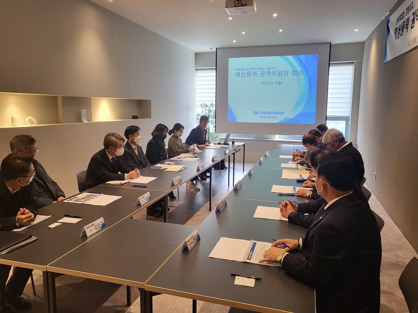 | ▲수협 해상풍력대책위는 지난 5일 서재창 수석 대책위원장을 비롯한 전국 7개 권역위원장과 수협중앙회 김기성 지도부대표가 참석한 가운데 긴급회의를 열어 대처방안을 논의했다.(사진=수협중앙회) |