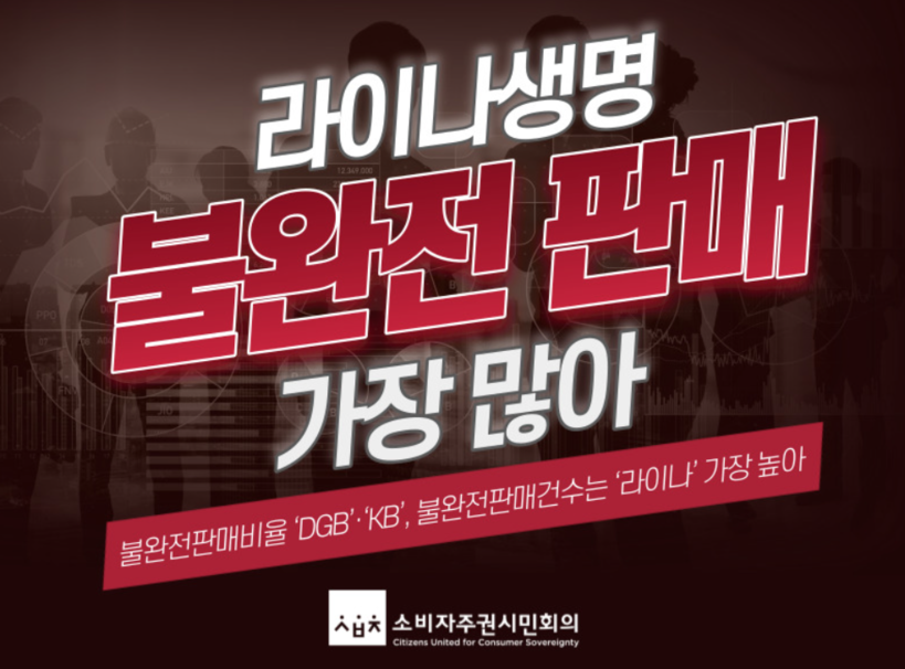 ▲금융소비자보호법 시행 이후 보험사들의 불완전판매가 줄고 있는 가운데, 생명보험사 중에서 라이나생명이 지난해 불완전판매를 가장 많이 한 것으로 드러났다.(사진=소비자주권시민회의) |