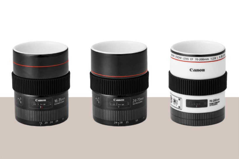 미니 컵 시리즈는 캐논 렌즈의 명불허전으로 불리는 EF 16~35mm F2와 EF 24~70mm F2.8L II USM, EF 70~200mm F2.8L IS III USM의 모양을 입힌 제품들로 세트 구성이다. 중간 손잡이 부분을 포커스 링처럼 만들어 실리콘으로 처리한 것도 돋보인다.
