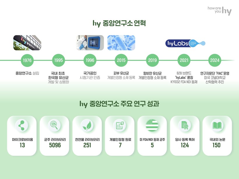 이후로도 hy는 균(菌) 발굴에 전념하고 있다. 중앙연구소는 국내 최대 규모의 프로바이오틱스 집합소로 전국 각지에서 모은 5096종의 균주를 보유 중이다. 124건의 등록 특허, 150편의 국내외 논문으로 경쟁력도 갖췄다. 또한 251종의 천연물 라이브러리를 확보해 소재 개발 범위를 넓혔다.