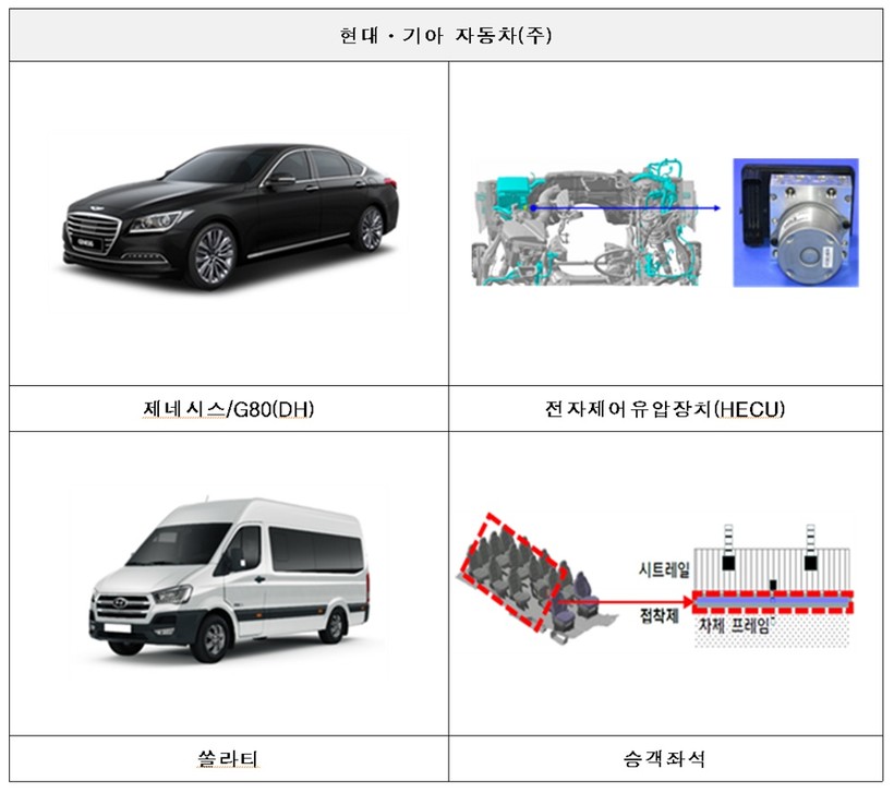 27일 국토교통부에 따르면 현대·기아차에서 제작 판매한 제네시스 G80 등 4개 차종 70만583대는 전자제어 유압장치(HECU) 내부 합선으로 화재가 발생할 가능성이 확인됐다.